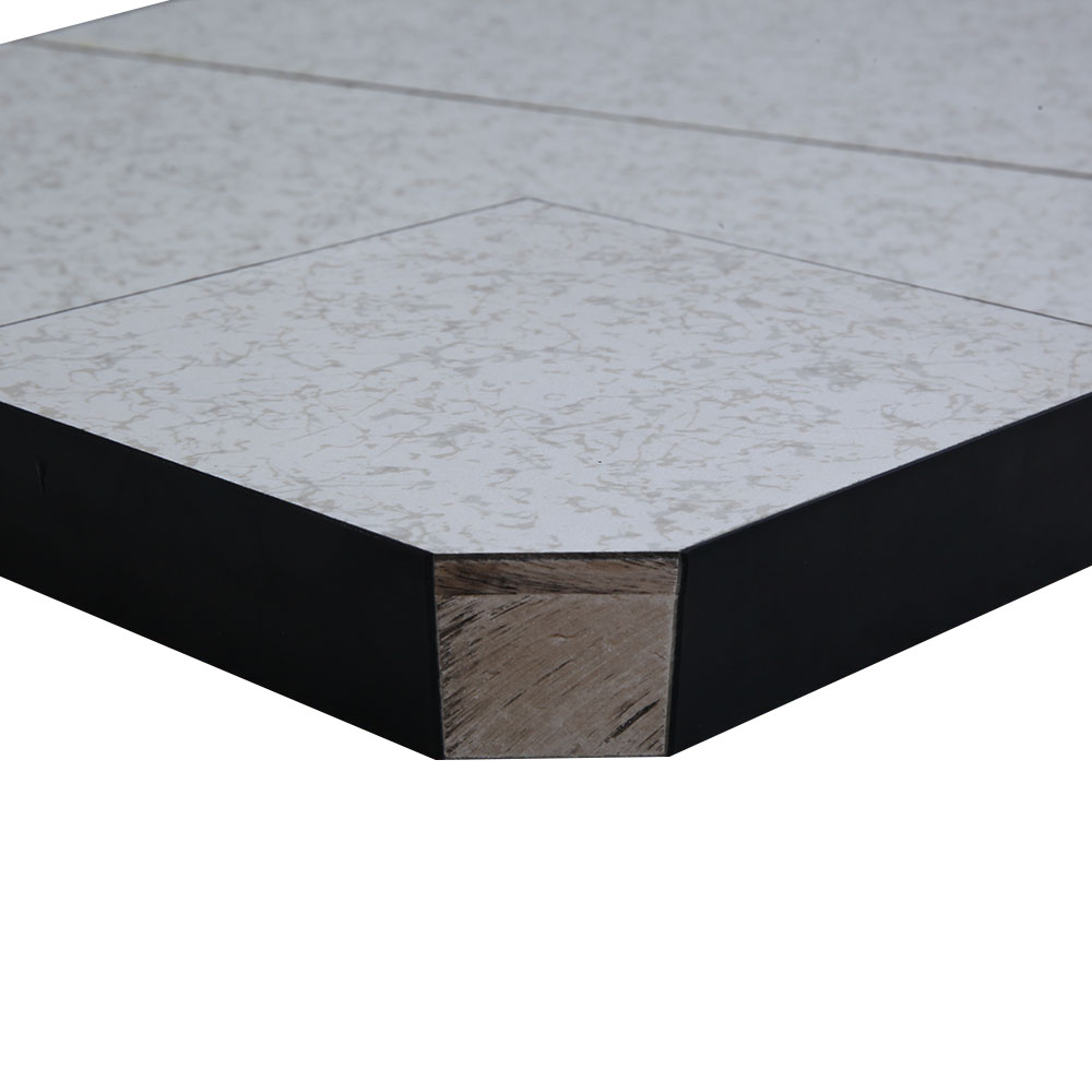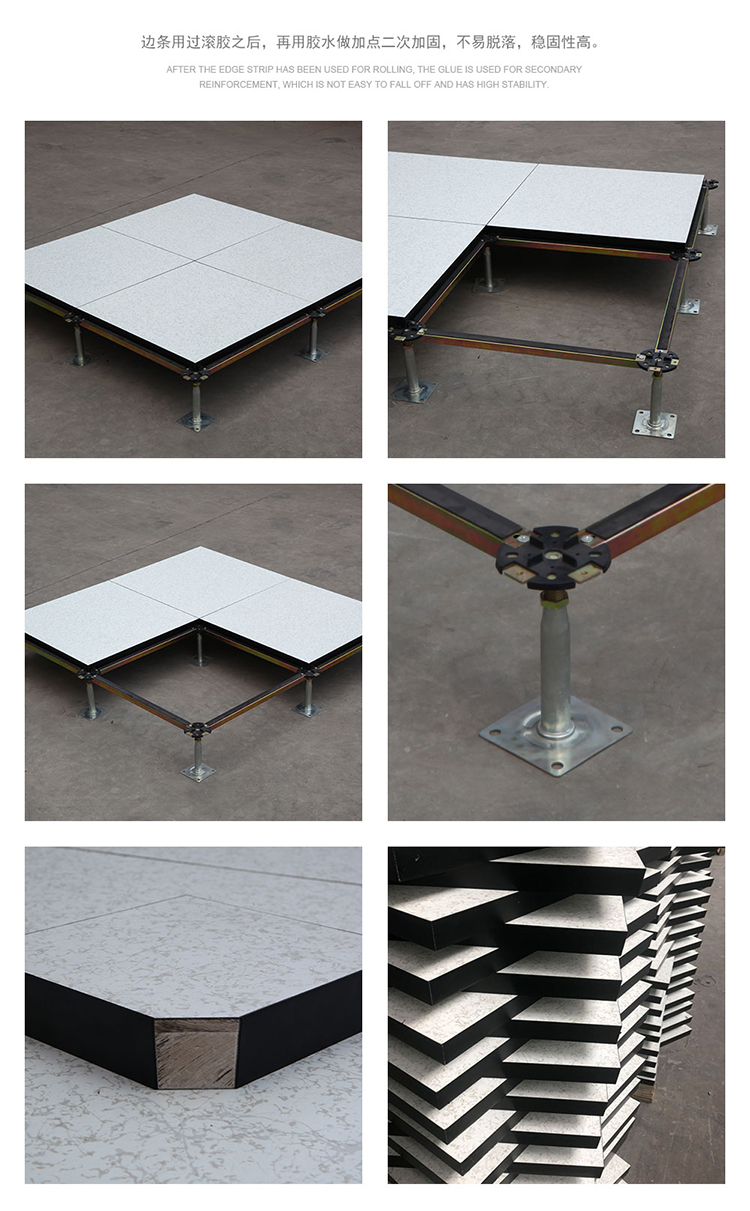 硫酸鈣防靜電地板采用硫酸鈣為基材,地板上面用防火板HPL/PVC/陶瓷地板等裝飾面層,下面用鍍鋅板或壓花鋁合金粘合,四周用PVC導靜電封邊,地板不易受潮,不易變形,耐燃燒時間更長,使用壽命長,安裝好的地板下面形成通路,方便下面地板走線,線路檢修。地板無需除油磷化噴塑,平整度好、邊不反翹,環保、強度大,密封性及穩定性好。