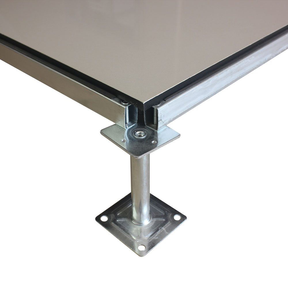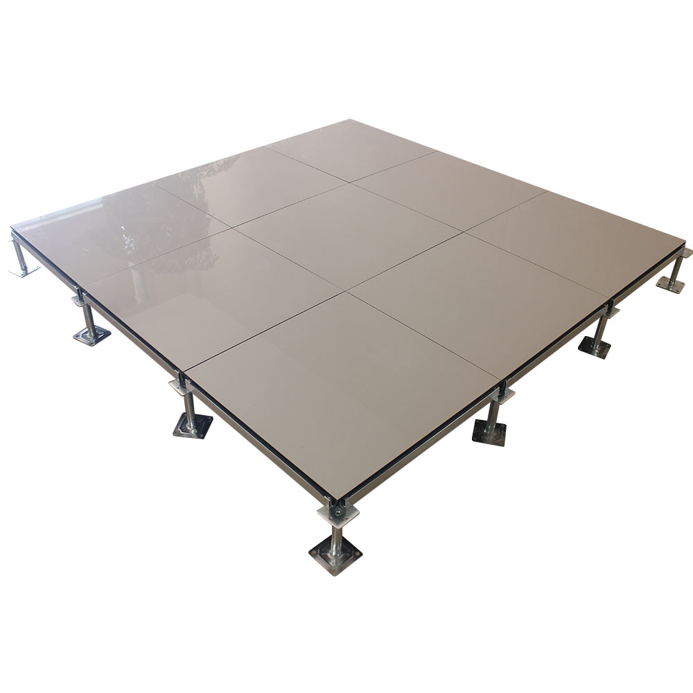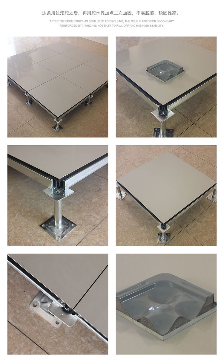 全鋼陶瓷防靜電地板采用上海寶鋼合金冷軋鋼板,經拉伸后點焊成形。在瓷質面層的生產過程中,均勻注入防靜電添加劑,由于面層的耐磨性,防靜電性能可以保持20年以上。而且系統電阻穩定、經信息產業部防靜電協會檢測,各項性能均達到要求。全鋼陶瓷防靜電地板系統有地板、橫梁、支座組成。橫梁和自身高度可調的支座用螺釘連結成穩固的下部支承系統,地板鑲嵌入橫梁圍成的方格內。