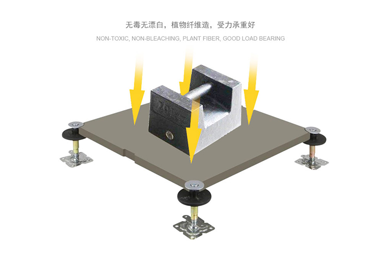 無機質(zhì)網(wǎng)絡(luò)地板是由硅酸鹽、無機纖維、礦物纖維、石英砂等材料經(jīng)過高壓一次成型的環(huán)保地板,每塊地板自帶穿線孔。地板四角鍍鋅底座支撐,不帶橫梁系統(tǒng)。每塊地板四角有90度圓弧,四塊板組合而成后形成一個圓,有一個鐵制螺母壓角固定。
