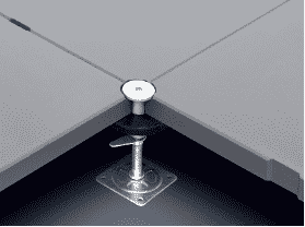地板四角鍍鋅底座支承,不帶橫梁系統(tǒng)。每塊地板四角有90°圓弧,四塊板組合而成后形成一個圓,有一個鋁制螺母壓角固定。