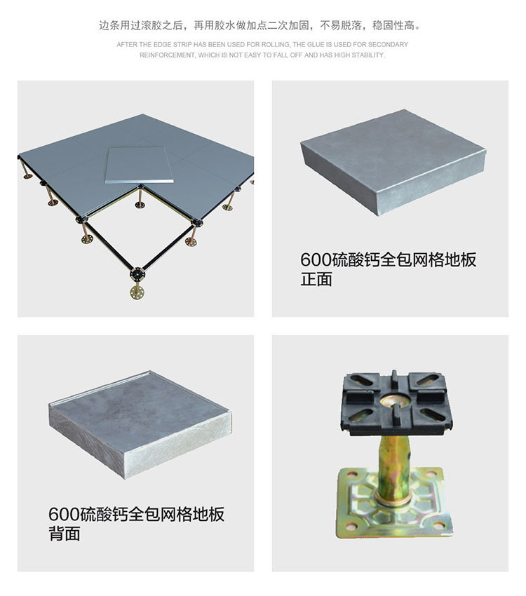 硫酸鈣網(wǎng)絡(luò)地板采用硫酸鈣為基材,板芯六面均用鍍鋅板包合而成,地板不易受潮,不易變形,耐燃燒時間更長,使用壽命長,安裝好的地板下面形成通路,方便下面地板走線,線路檢修。地板無需除油磷化噴塑,平整度好、邊不反翹,環(huán)保、強度大,密封性及穩(wěn)定性好。