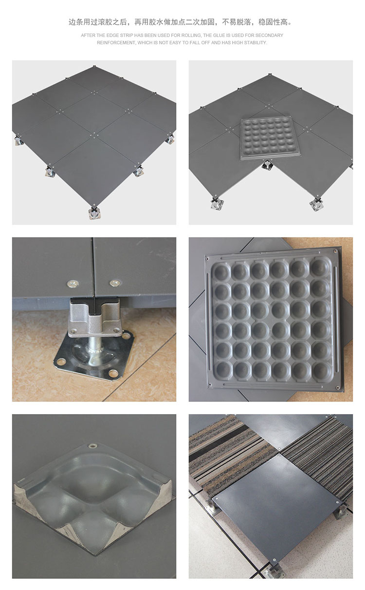 該地板可以選配帶出線口的配置,可根據(jù)要求任意添加線槽布線更具靈活性。此地板可以將強(qiáng)、弱電分開隔離,同時(shí)也便于檢修。安裝采用無梁角鎖,具有牢靠、穩(wěn)定、調(diào)平、簡便之特點(diǎn)。